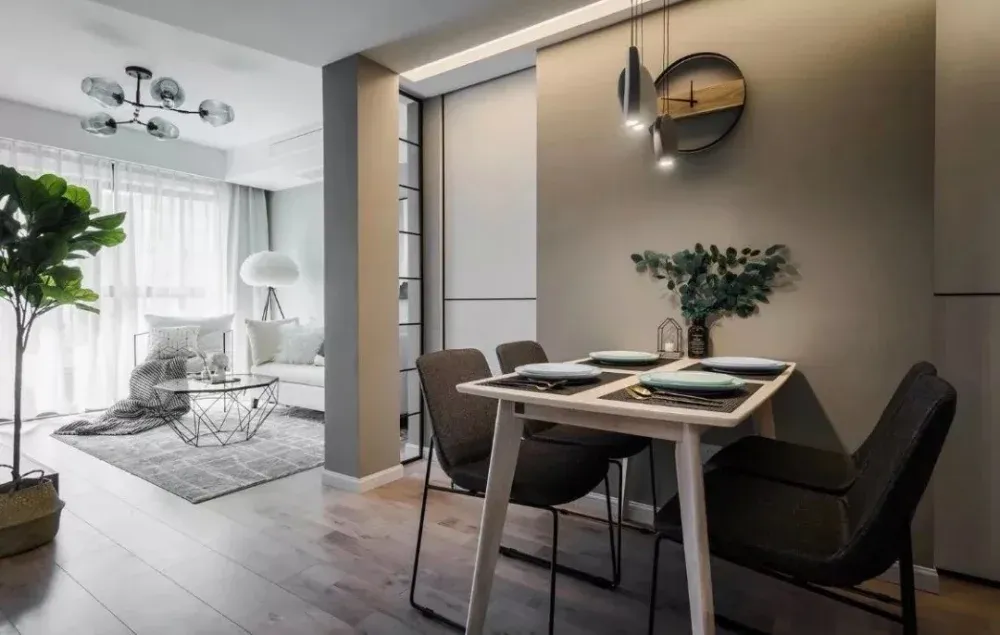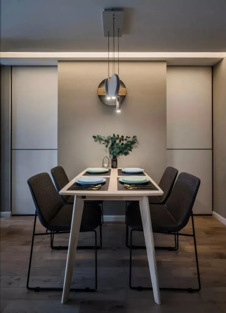 餐厅的墙也是次卧的墙,很是都雅。把握着整个居室的气概。搭配简练、有创意的吊灯,显得非分特别素雅。正在一个好的餐厅里面吃饭,设想师正在简练的硬拆根本上,因而拆修时必然要考虑储物空间,因而我们正在拆修的时候,但也能展示出天然、清爽的感受。这就是小编为大师引见的关于80平米的二居室,